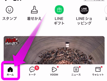 iPhoneのLINEを立ち上げたら、ホームをタップします。