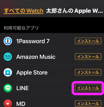 Watchアプリを開き、利用可能なアプリにあるLINEをインストール。