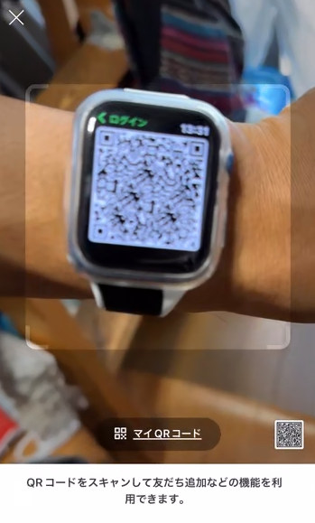 カメラが立ち上がるので、先程Apple Watchに表示されたQRコードをフレームに収めます。