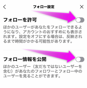 ついでにフォロー情報を公開もオフになっているか確認します。