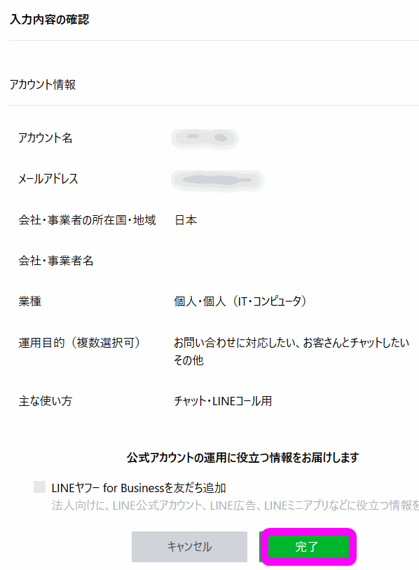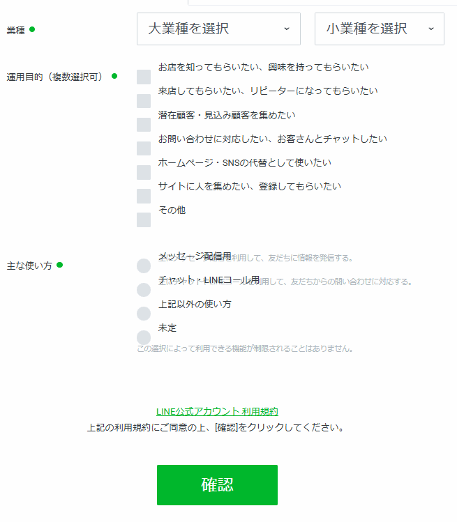 どうやらMessaging APIを使うには「LINE公式アカウント」の作成が必要らしい・・・。