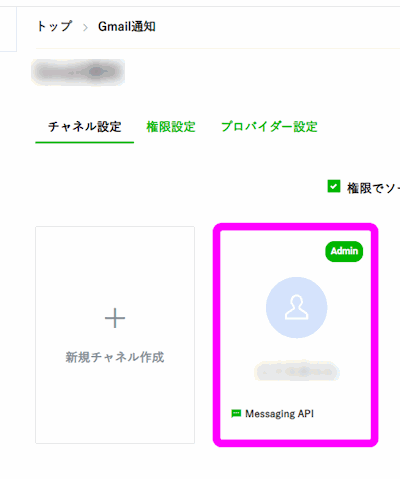 続いてチャネルを作成します。このチャネルが今回の主目的です。