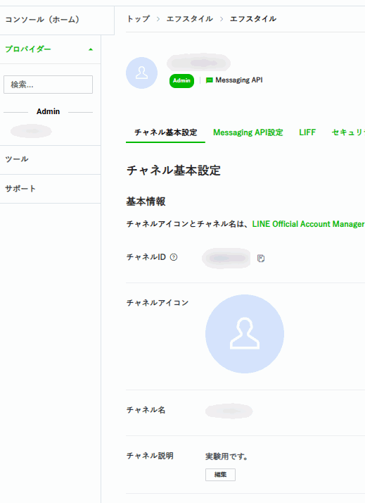 LINE Developersの画面で先ほど作成したプロバイダーをクリックします。