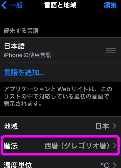 色で囲った「暦法れきほう」をタップする。